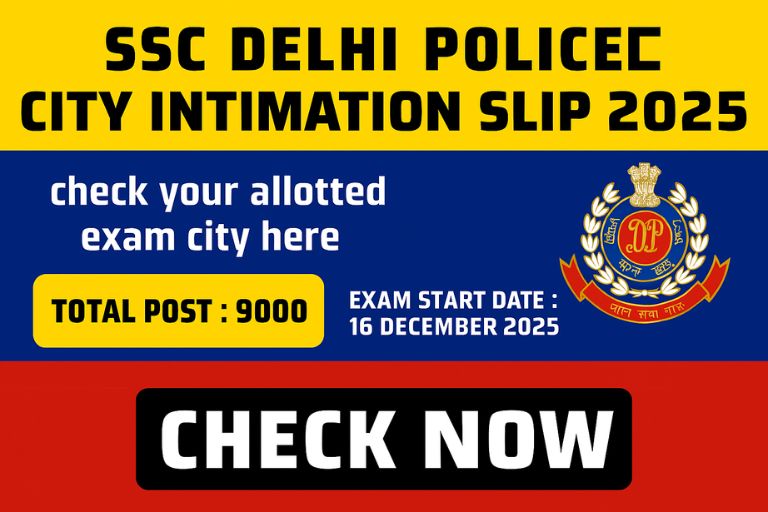 SSC Delhi Police City Intimation Slip 2025 : check your allotted exam city here